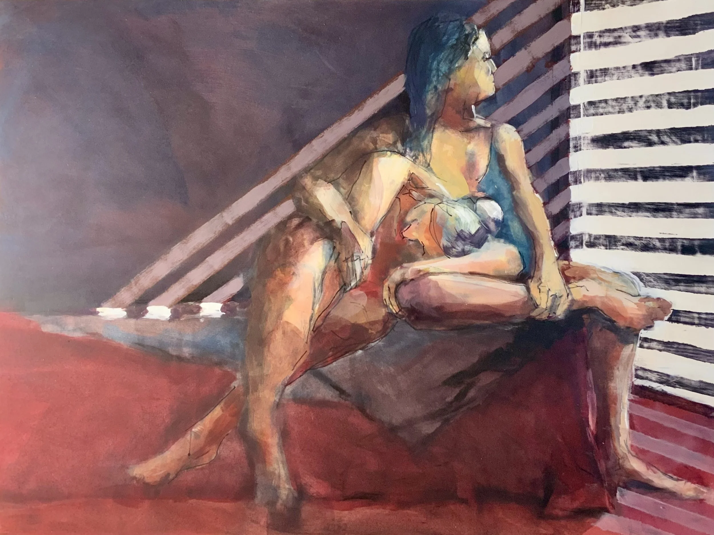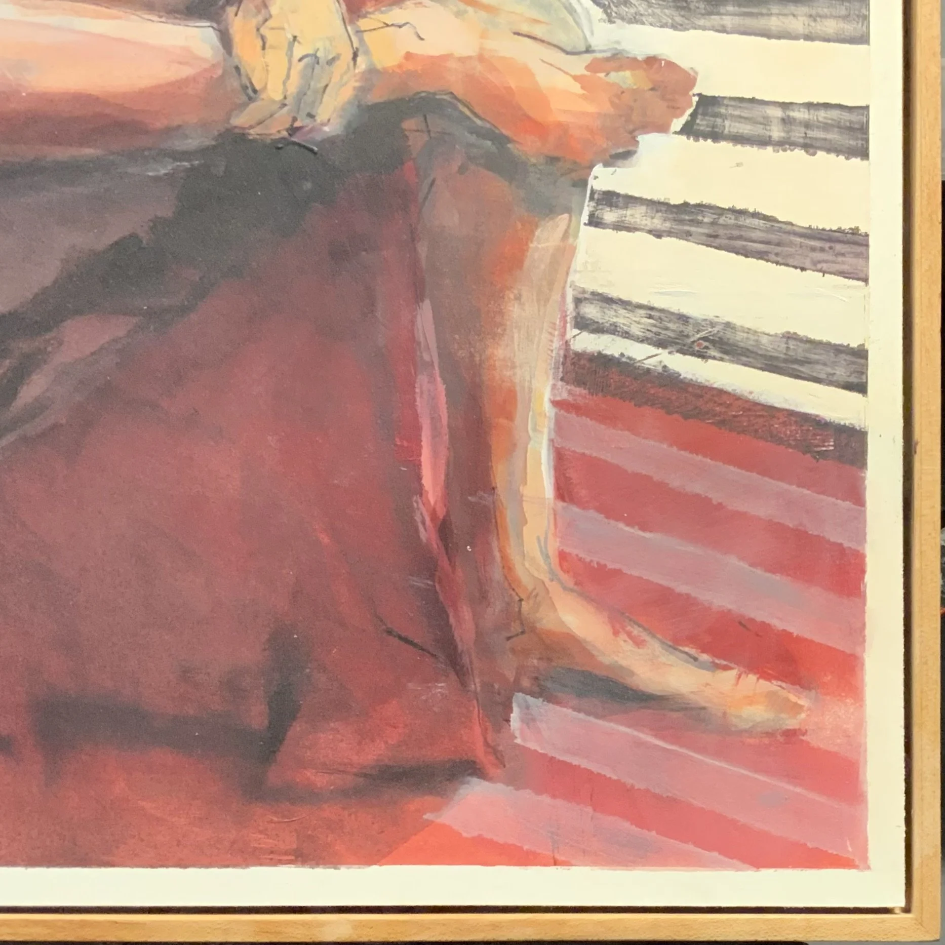 Consoling in Red Acrylic on Paper 18”x24” 19”x25” w frame.
