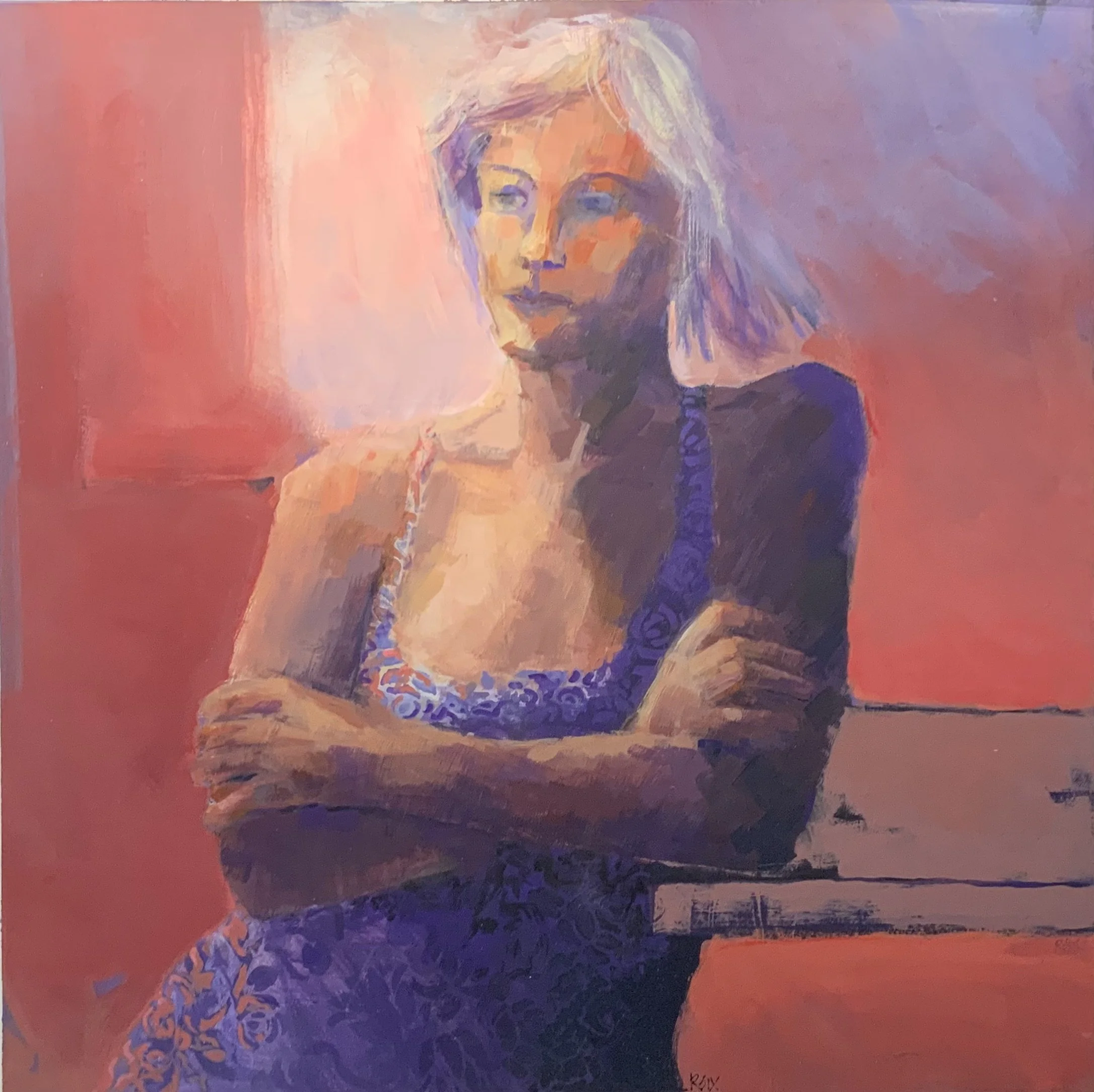 Lady in Purple Acrylic on Paper 21”x21”/25”x25” w frame.